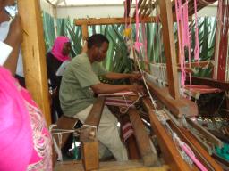 Figure 11: Demonstration on making of kikois and table mats from cotton collected from the farm